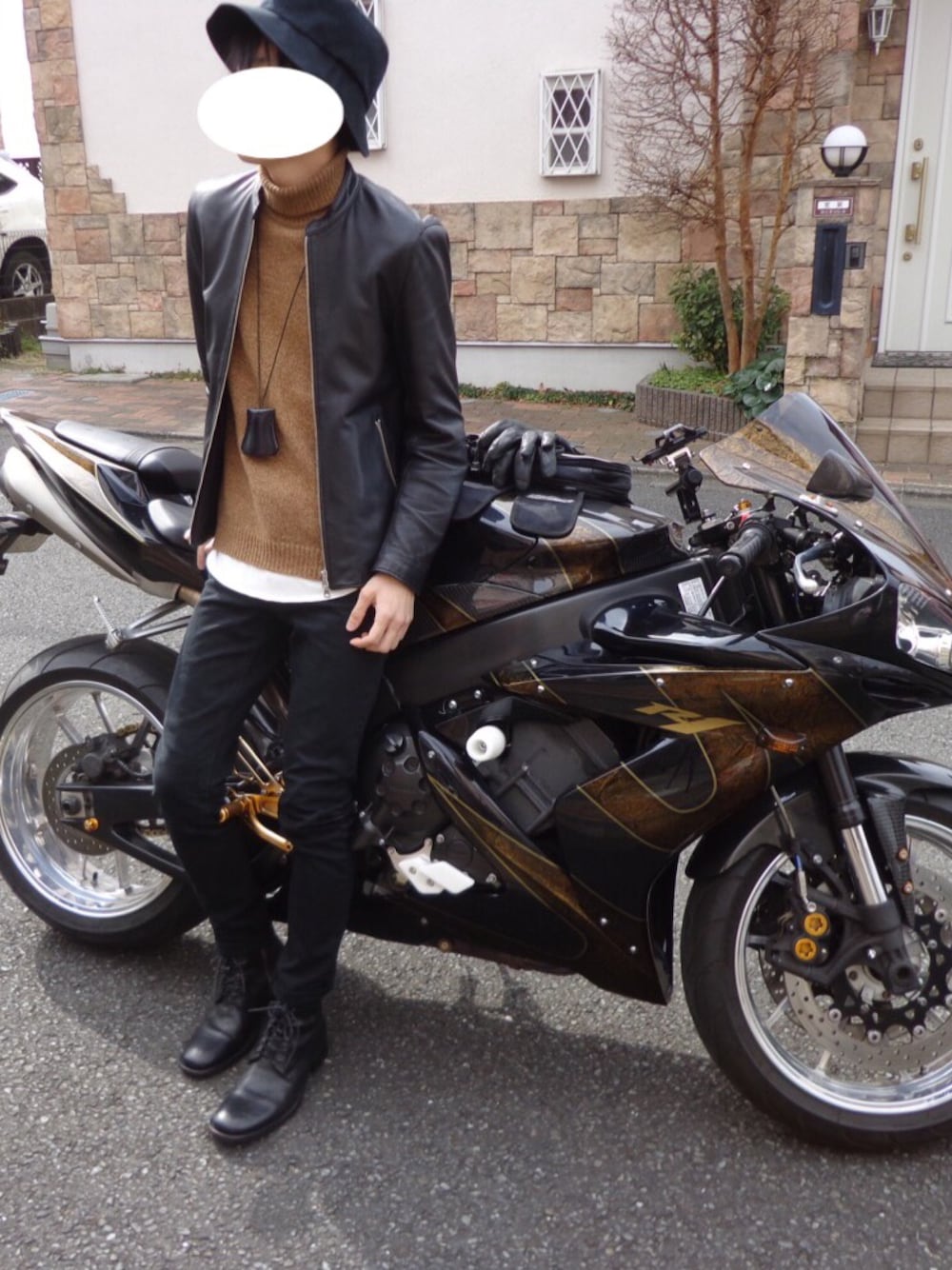 STUDIOUSとUNITEDTOKYOのシングルとダブルのレザージャケット両方ネットでポチッたのでまずはシングルを記念に撮ってもらいました。( ´ ▽ ` ) いつもの黒を基調にシンプルなコーデにしてみました。 (ついでに)後ろのバイクは今まで乗ってたR6からリッタークラスのR1に乗り換えたのでこっちも記念に笑笑