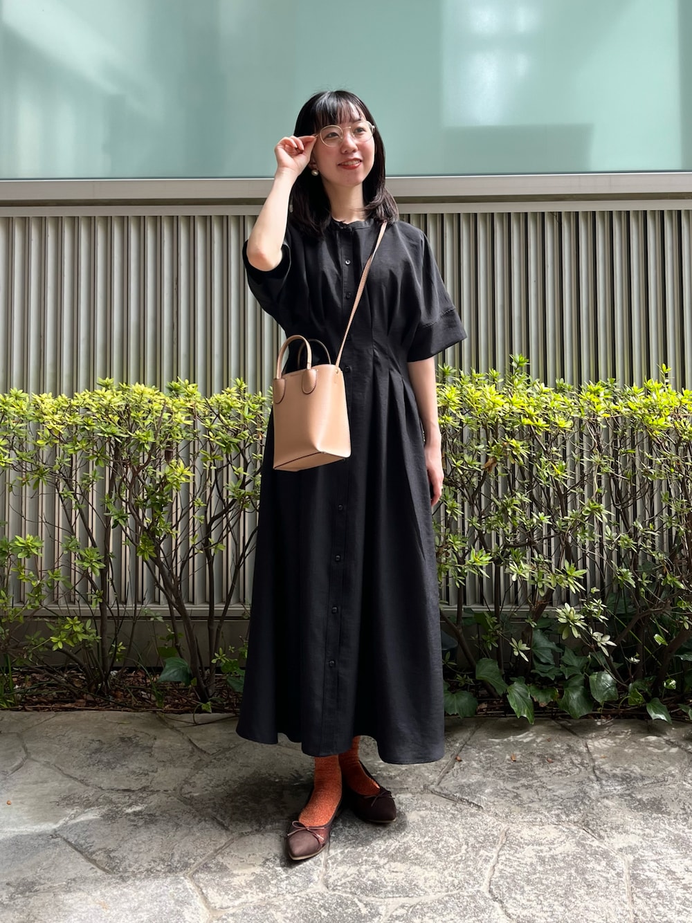だてちゃんのワンピース「リネンライクウエストタックシャツワンピース」を使ったコーディネート