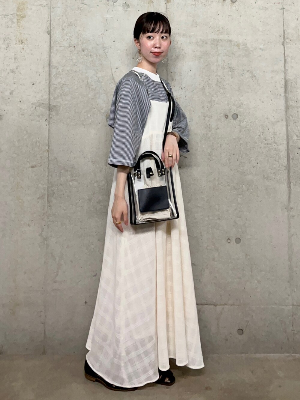 モノトーンコーデ キャミワンピはSサイズ着用です~~肩紐で長さ調節できるのでお好みの丈感で着れます♪