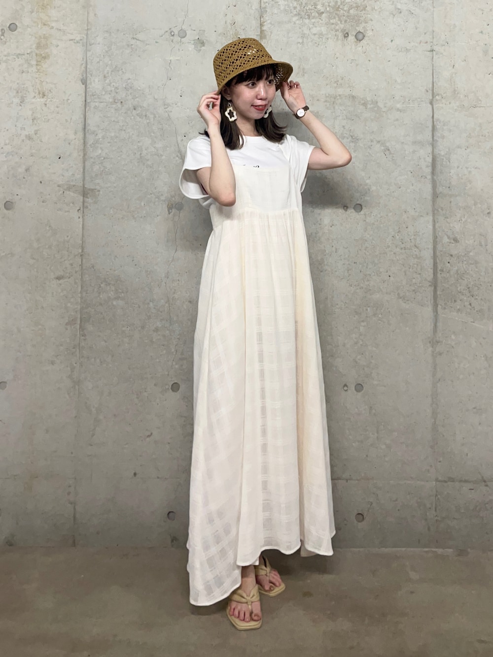キャミワンピはSサイズ着用です♪ 季節問わず着ていただけるアイテムになってます~~!ペーパーハットはざっくりした網目がかわいいです🤍ZOZOTOWNで『891円』までお値下げしてます!🌻