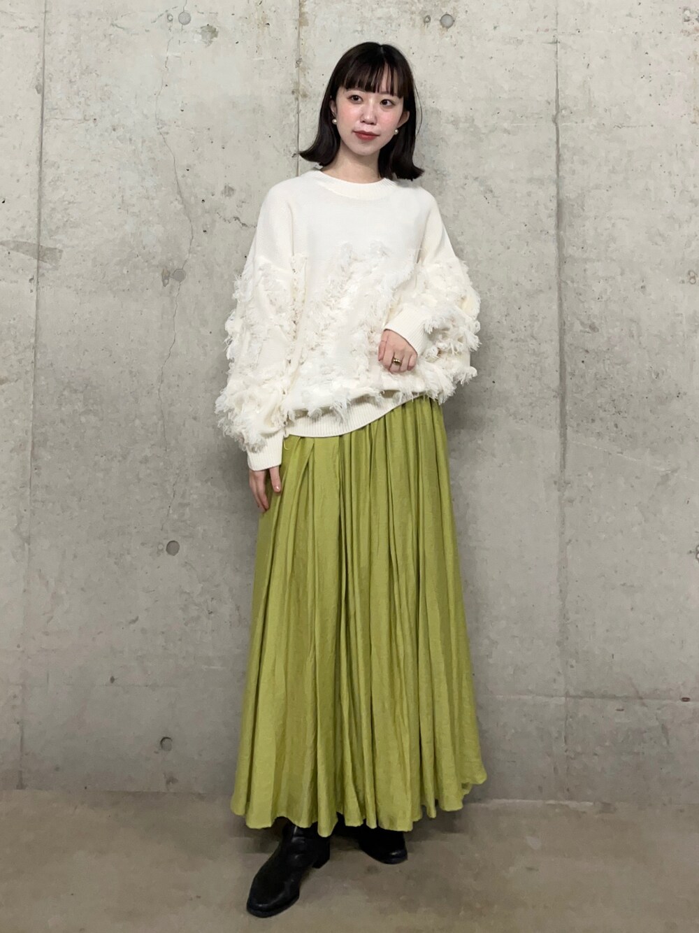 カットフリンジセーターはボリューム感がちょうどよく着膨れしたりしないおすすめアイテム◎ スカートはSサイズからあるので低身長さんにおすすめのアイテムです!
