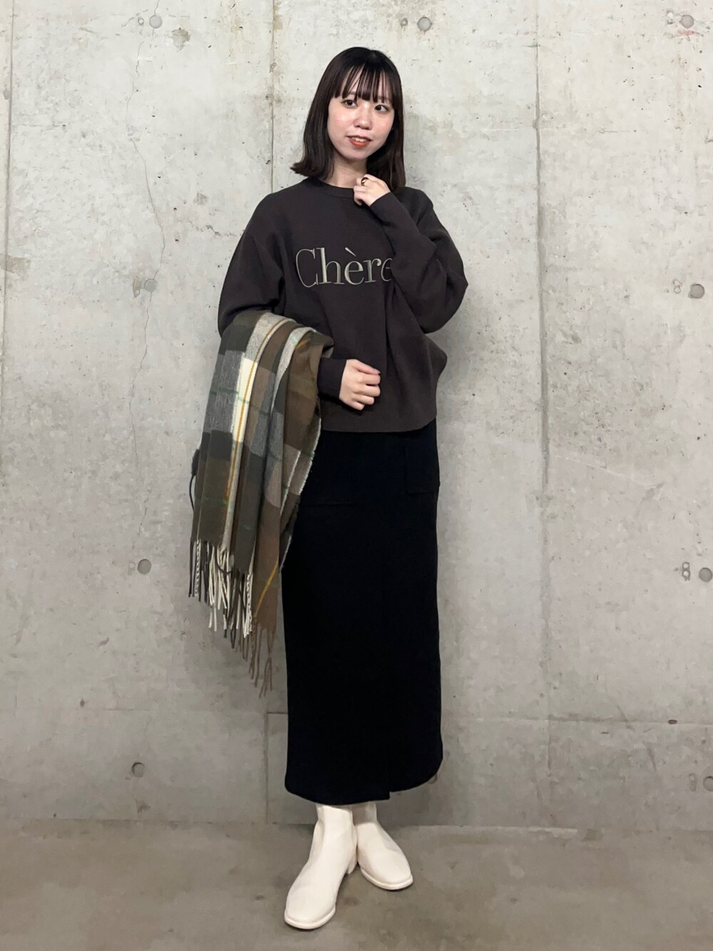 だてちゃんのブーツ「『4サイズ展開』『晴雨兼用』スクエアトウセンターシームストレッチローブーツ」を使ったコーディネート