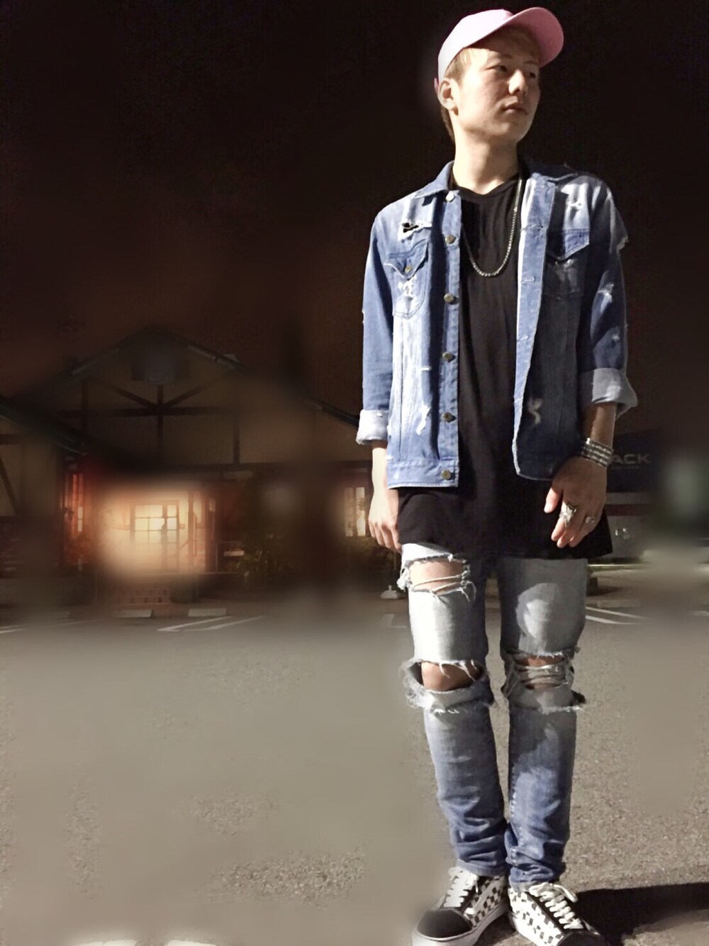 初めてのデニムオンデニムコーデ投稿です(*^^*) デニムパンツは最近ハマってる自作ダメージになります👀👀 デニムオンデニムでも薄めのインディゴでコーデすると重くならなくしっくりきますね。 差し色にピンクのキャップを入れました。ピンクをコーデに取り入れるのは少し難しいですがみなさんもチャレンジしてみてください😁😁 最近はオールドスクールの チェックとブラックをよく使いまわしてます〜
