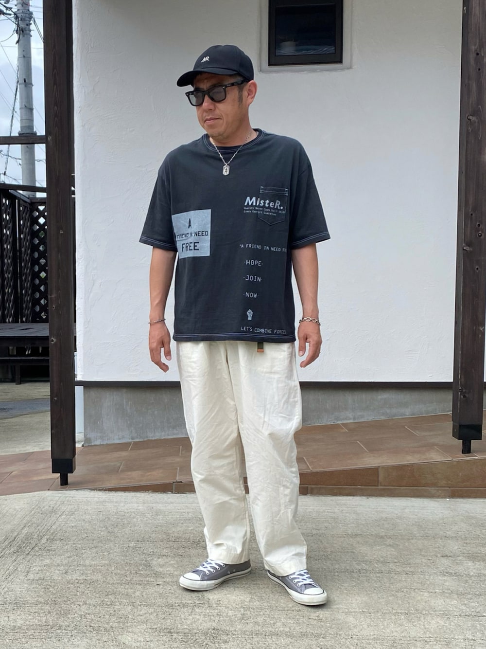 だっちんのキャップ「MR.OLIVE ミスターオリーブ / RACAL×MR.OLIVE COLLABORATION MR LOGO TWILL BASEBALL CAP ラカルコラボロゴツイルベースボールキャップ / M-19333」を使ったコーディネート
