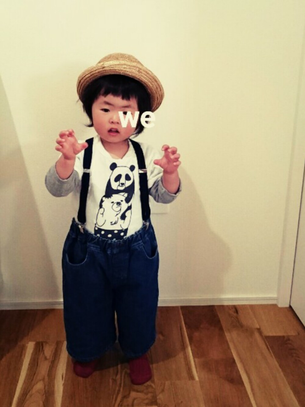 安くて可愛いワイドパンツがなかったので ユニクロのキッズのショートパンツを はかせてワイドパンツ風に。