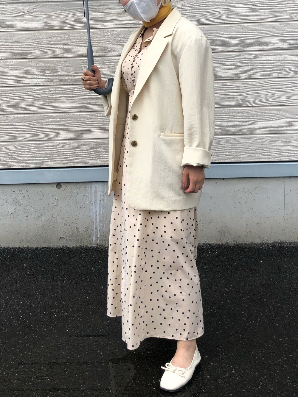 ビタミンカラー✖️ドット🍋 ビタミンカラーは首元のイエロースカーフ ドットはワンピース でスタイリングしました◎