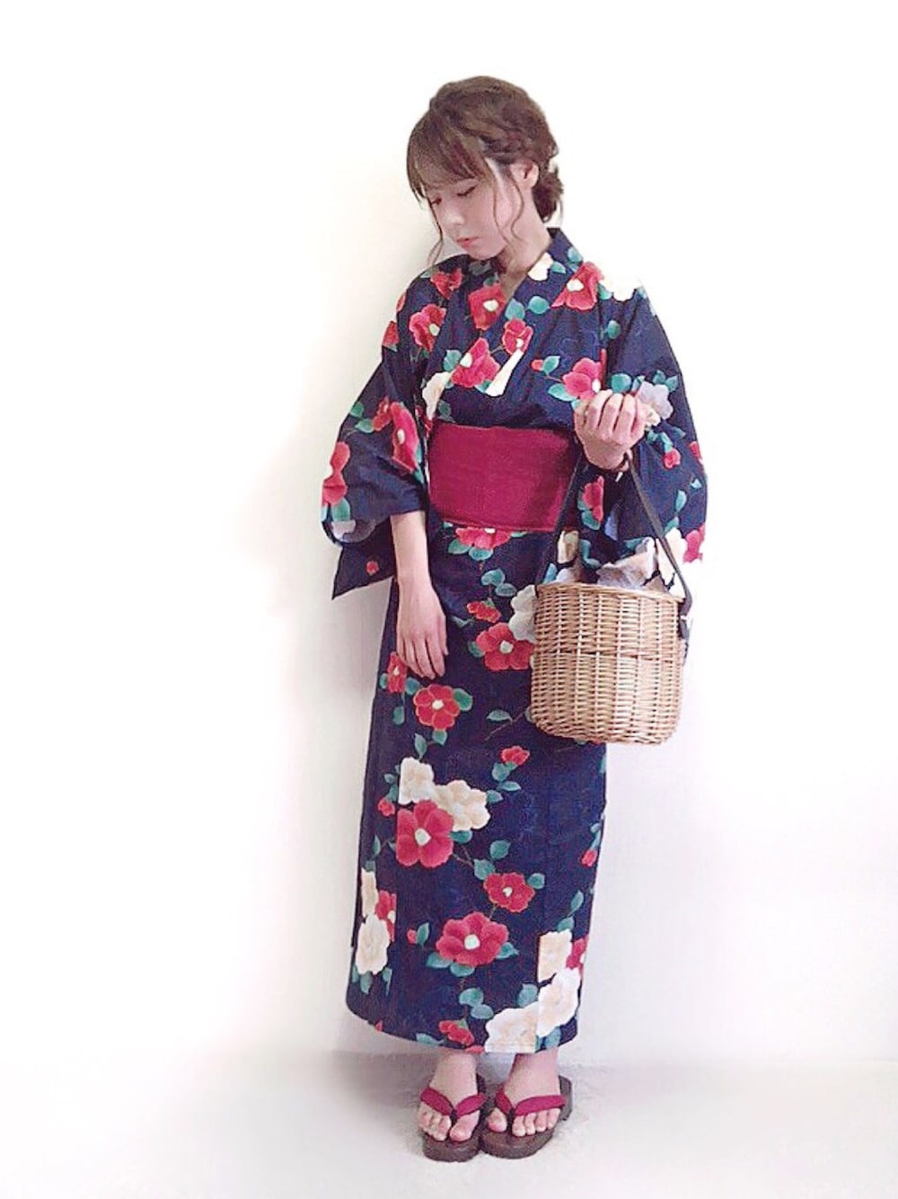yumi.の浴衣「3点セットツバキ浴衣」を使ったコーディネート
