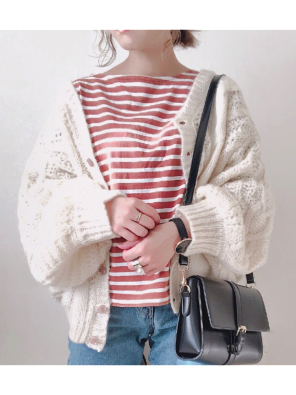 yumi.のカーディガン/ボレロ「ハートキュンケーブルニットカーディガン」を使ったコーディネート