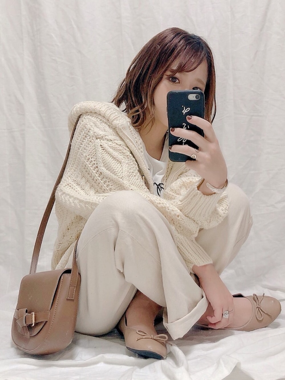 yumi.のニット/セーター「ケーブルニットパーカー」を使ったコーディネート