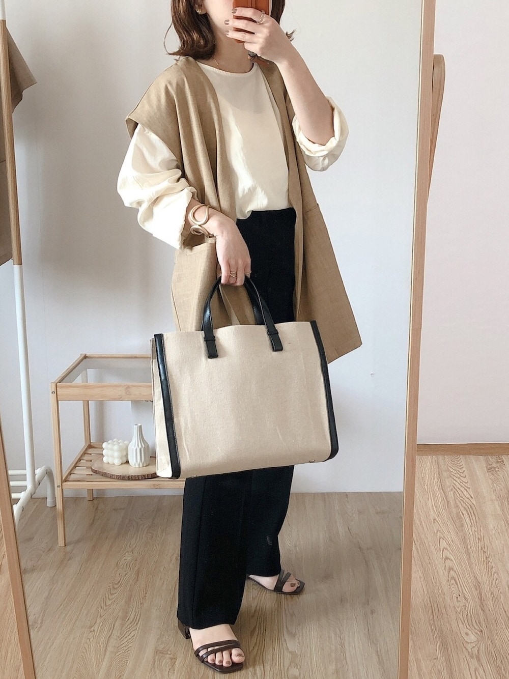 yumi.のトートバッグ「2Wayキャンバストートバッグ」を使ったコーディネート