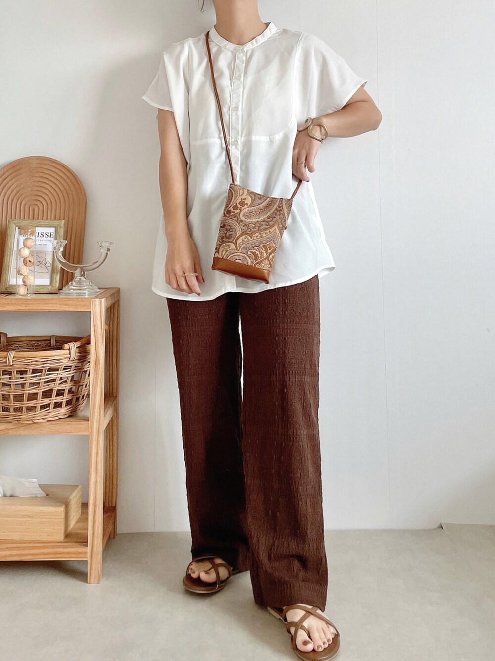 yumi.のサンダル「大人カラーと上質な素材で合わせやすいトング/コード/ビーチサンダル」を使ったコーディネート