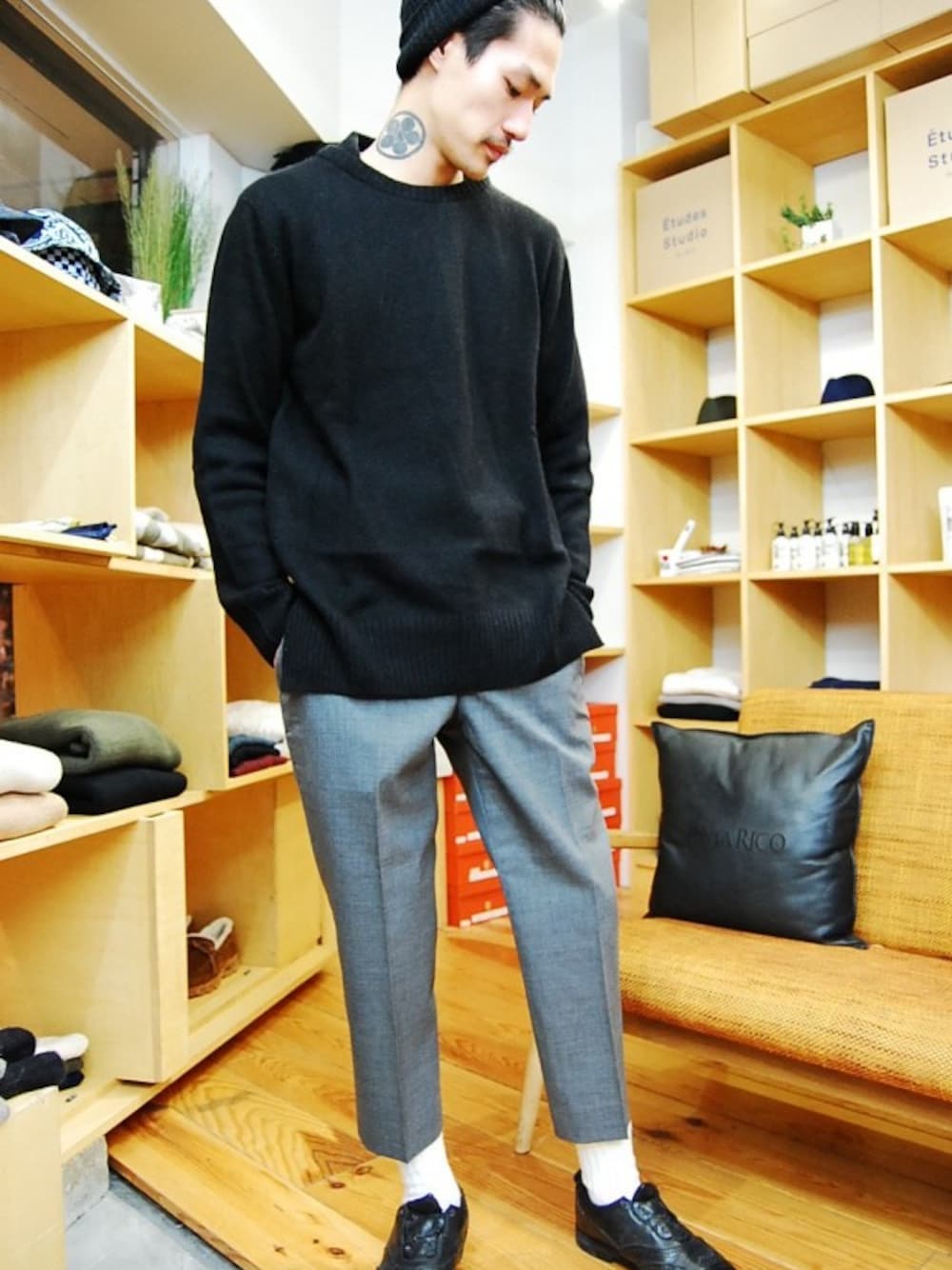 またまたシンプルに登場。笑 ビックシルエットのニットにドレススラックスを合わせました。足下にはスペクタスのハイテクシューズをスラックスに合わせてドレスライクの印象を崩さない様に内羽シューズで* 見て頂きありがとうございます*