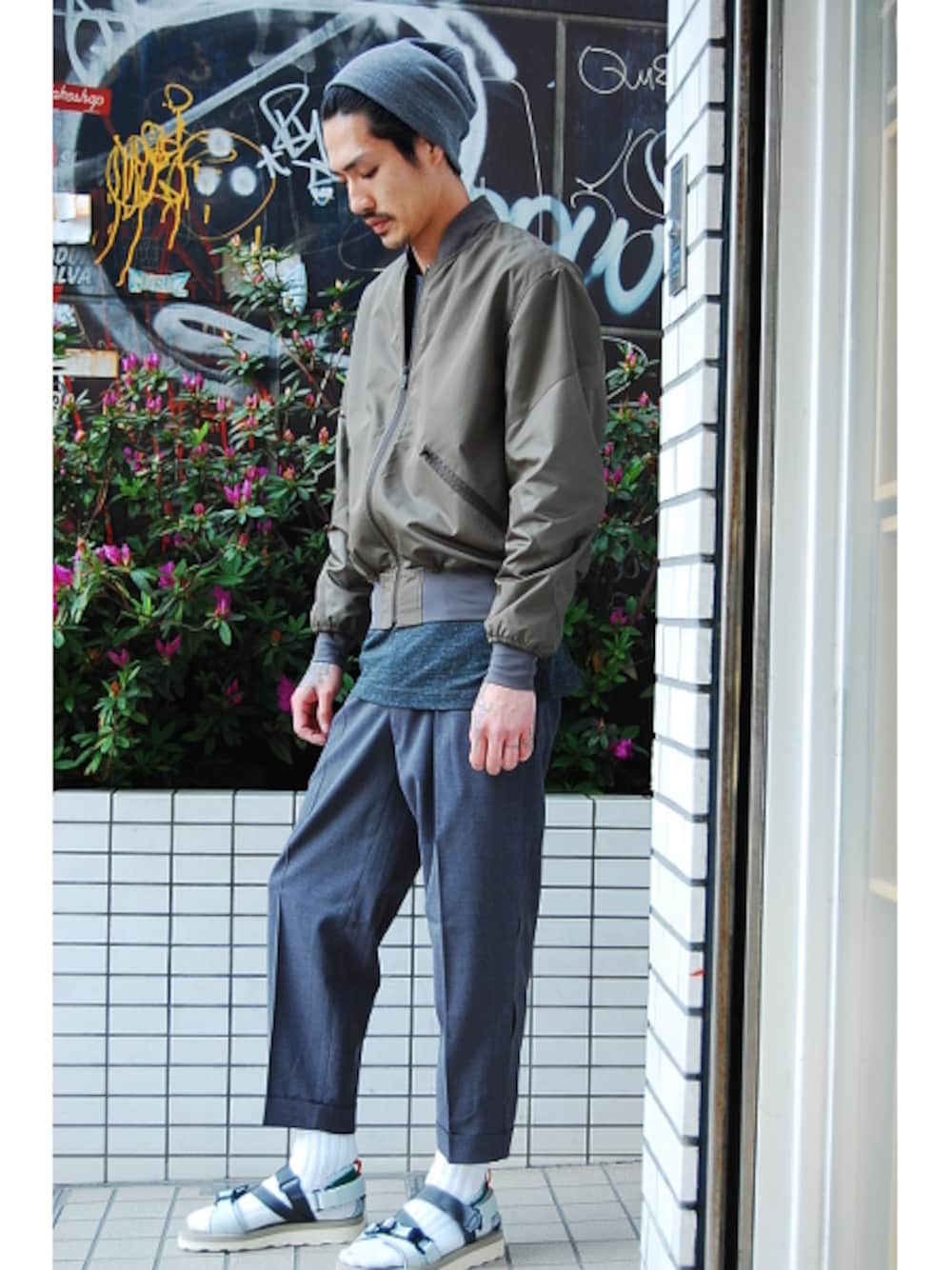 大人気のNITのサンダルを取り入れて* スポーティーなMA-1がグッとくる、パンツはクロプド丈のレイヤードスラックスで 見て頂きありがとうございます*