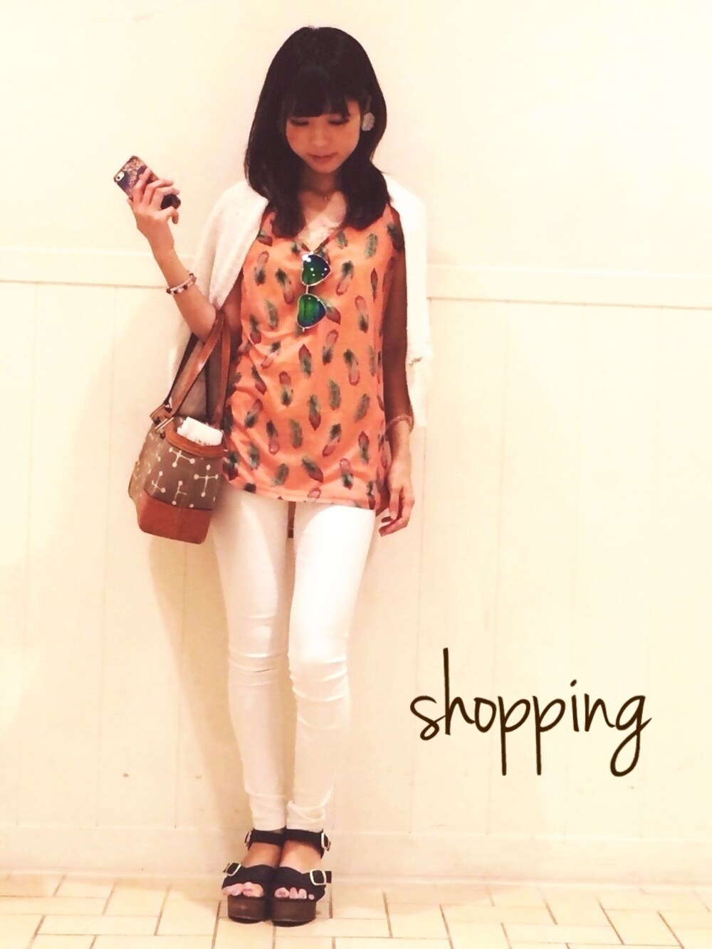 お買い物day スカイツリーに行きました(^ ^) ★流行りのホワイトコーデ。最近買った羽柄Tシャツの色合いが、よく映えるようにしました。