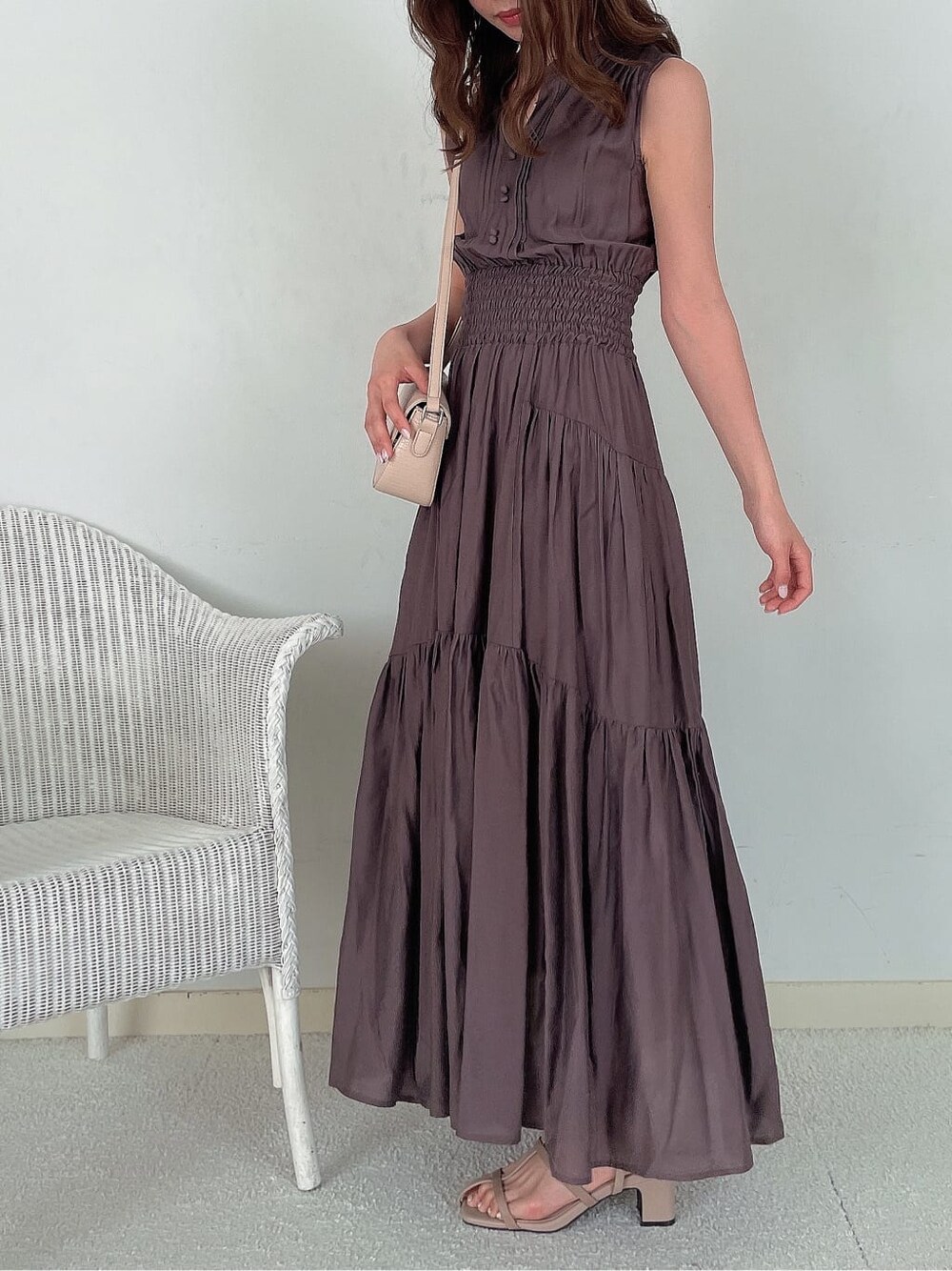 お問い合わせ殺到♡今季一押しワンピースコーデ♡ 【ワンピース】女の子の鉄板!ティアードデザイン♡光沢感のあるサラッとした素材感が、夏らしい1枚♪夏のイベントや旅行にもぴったり◎◎シャーリングも入っている事で、ウエストラインも華奢見えします◎◎私が着用しているBRNは、他カラーの中でも1番大人っぽさを出せますよ♪彼とのデートやディナーにもぴったりです◎◎ 【シューズ】今季は細ストラップがトレンド!シンプルなデザインで万能に使って頂けます◎こちらのサンダルも、ストラップ部分は調整可能なのでご安心下さい☺︎24cmの私はLsizeがジャストでした!