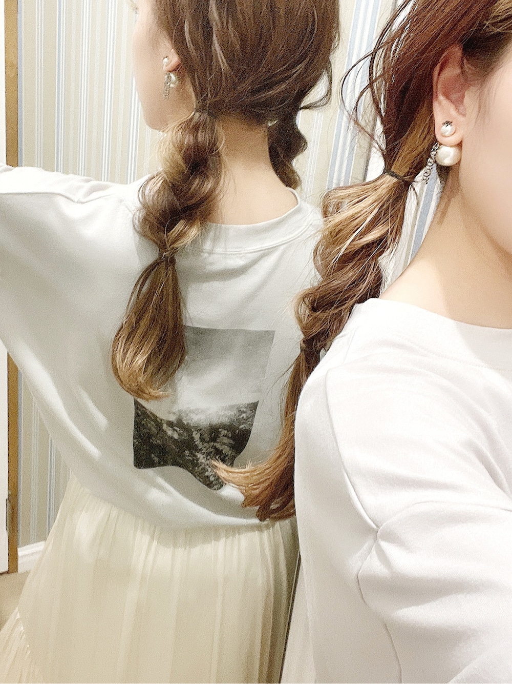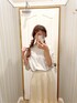 【トップス】少しオーバーサイズなTシャツをinするとこんな感じに着て頂けます♪dazzlinのコンセプトイメージをバックプリントされており、可愛すぎて思わず鏡越しに撮ってしまいました♡(笑)実は実は…こうゆうオーバーめかつ女性らしいシルエットのTシャツずっと狙っていて…私も先程買ってしまいました☺︎(笑)とゆう、リアルタイム報告ですが、着心地もさらっもして本当に使いやすい…しかもこのデザインは本当に今回のみ!なので、狙われてる方はお早めに♡【スカート】大好きなティアードシリーズ♡ティアードの特徴でもあるフワッと広がるシルエットかと思いきや、サテン素材で落ち感のあるどこか上品で高級感溢れる女性へと大変身出来るスカートです…♡風にさーっとなびく動きも可愛すぎて、履くだけでなく履いてる時間まで楽しんで頂けます☺︎【コーデ】ゆるっとしたTシャツ×スカートの組み合わせは最強すぎる♡ヘアスタイルも三つ編みを崩して簡単に出来るのですが、巻いたりの手間もかからないのでさっとお洒落に小慣れ感まだ出しながら、楽に着て頂けます⭐︎おうち時間にもぴったりなコーディネートです♪