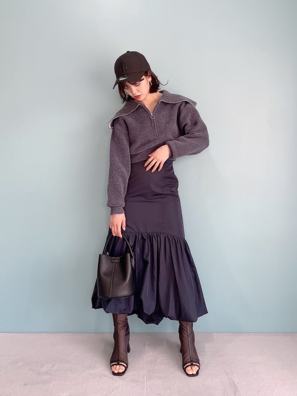 AYU KAMEIのニット/セーター「オーバーカラーZIPニットトップス」を使ったコーディネート