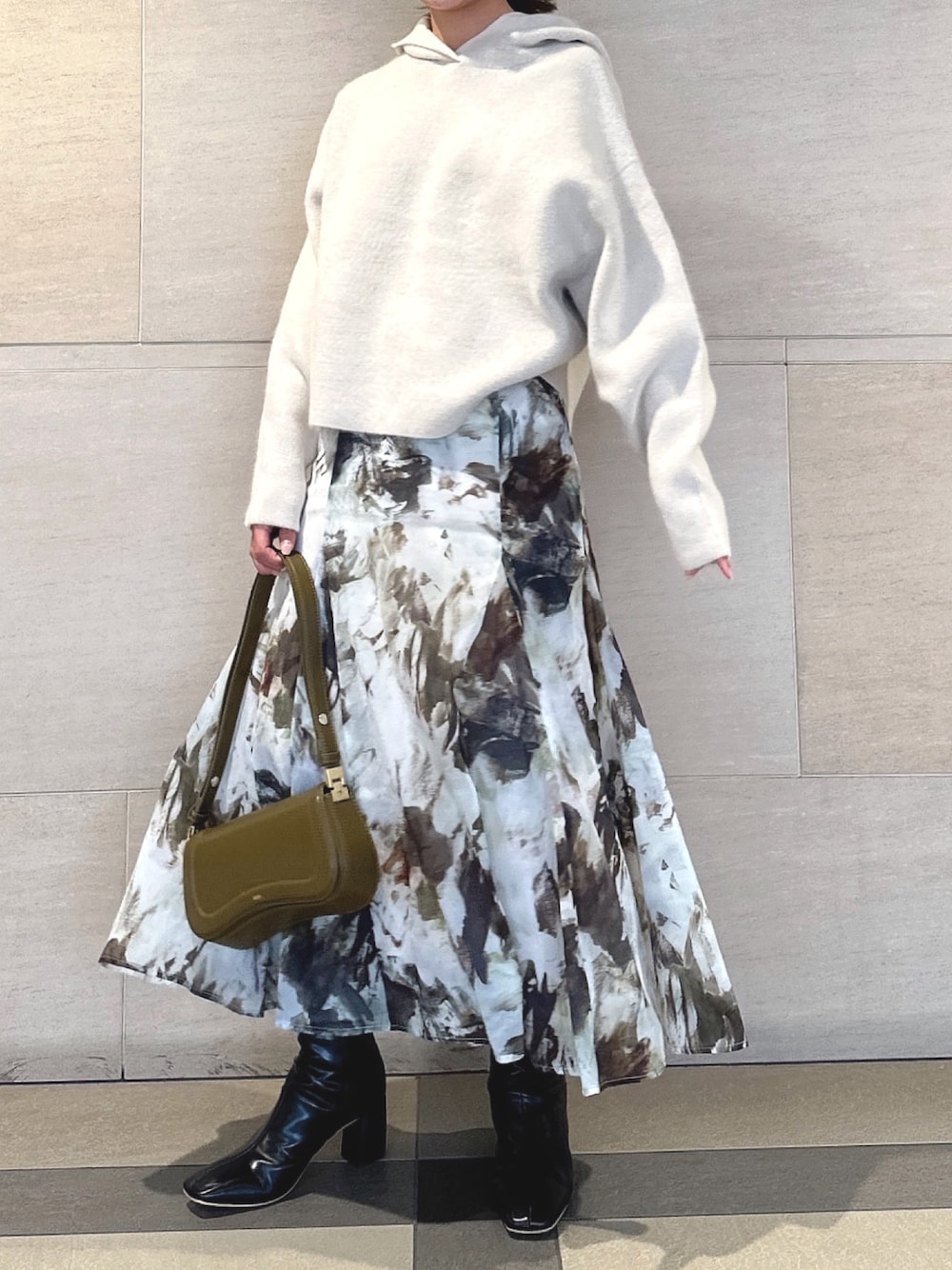 『instagram 着用アイテム詳細』 ▷▷ @lagunamoon_ayuで検索🔎 【トップス】毎年好評のラクーン混糸を使った温かみのあるパーカーニット◎158cmの私でウエストと袖は手のひら半分隠れるぐらいのオーバーサイズで、しっかり中にも着込めます!秋のお出かけに1枚で着用したり、冬場はアウターの中に入れフードを出すスタイリングもオススメ◎ 【スカート】LAGUNAMOONオリジナル柄の透け感を感じられるスカートです!ウエストが高めな分ハイウエスト効果があり足長効果も抜群!私着用のカラーはどんなトップスと合わせても、洗練された大人っぽい垢抜け感を出して頂けます◎Ssize着用しておりますが、足首にふわっとかかるぐらいの良い丈感でした!
