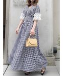 春のテーマパークコーデ♡ ギンガムがキャッチーなので、思わず写真を撮りたくなってしまう…♡ 袖のコットンレースも可愛いので着ているだけで気分が上がります♪ Instagram 💛 @miki_funaoka_