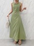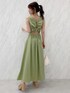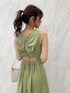 【153cm/骨格ストレート】背中が大胆に開いたワンピース♡インナーはベアトップを着ています。上半身はややタイトですが、裾にかけてフレアに広がるのでシルエットにメリハリがついてとっても綺麗です。素材もリネン系でサラサラしているので夏場にもぴったりです♡