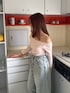 【153cm / ストレート】 【インナー】 温感・セラミド加工で冬でも快適に着られるカップインインナー。 デコルテをきれいに魅せるオフショル仕様で、ズレにくく安定感のある着心地。