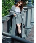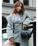【153cm / ストレート】 【アウター】 Iラインシルエットで着ぶくれを防げる一枚。 顔まわりを華やかに見せる大きめの襟がポイントで、中のアイテムも見せながら着ることができます。 【トップス】 シャツ×オフショルの上品な一枚。 サテン素材でつるんとしているので、綺麗めな印象にも◯ 肩のアジャスターで調整が可能です。 【スカート】 久間田琳加さん定番の”りんか丈”で設定されたミニスカート。 ややハイウエストなので脚長効果があります。 アウターと同素材でセットとして着用可能です。