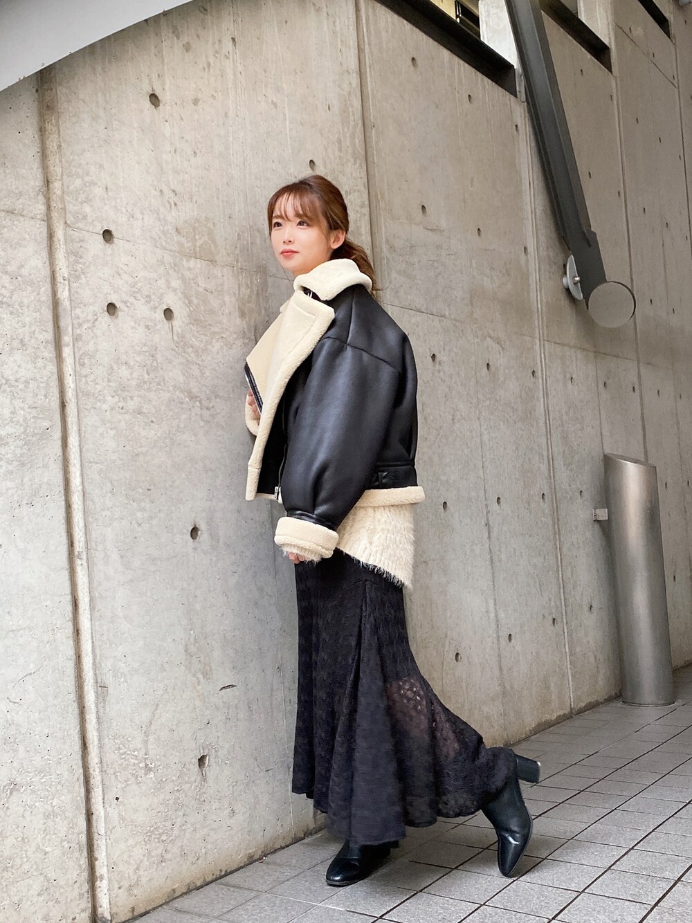 rina momiura(dazzlin)のブルゾン「レザーライクボアショートブルゾン」を使ったコーディネート