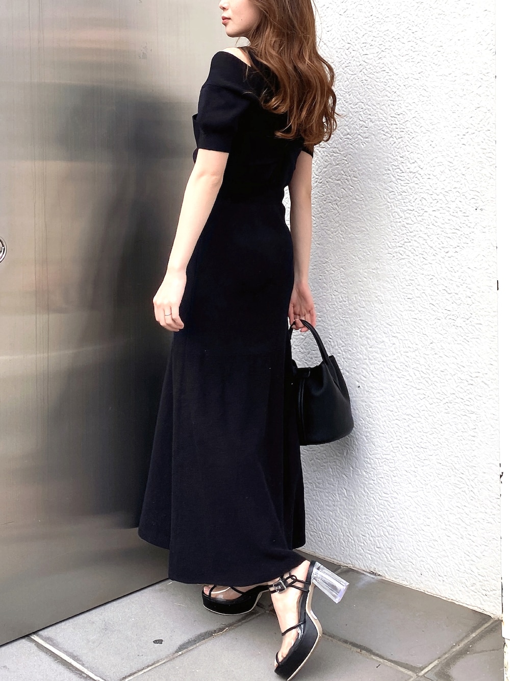 rina momiura(dazzlin)のワンピース「レイヤードクロスニットマーメイドワンピース」を使ったコーディネート