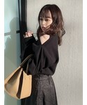 肩のチラ見せがあざとかわいいニット❤︎ ロングスカート合わせで、ちょっぴり大人かわいい要素も入れるのもバランスよく着れます。 モノトーン合わせで大人あざと可愛いコーデの完成です!