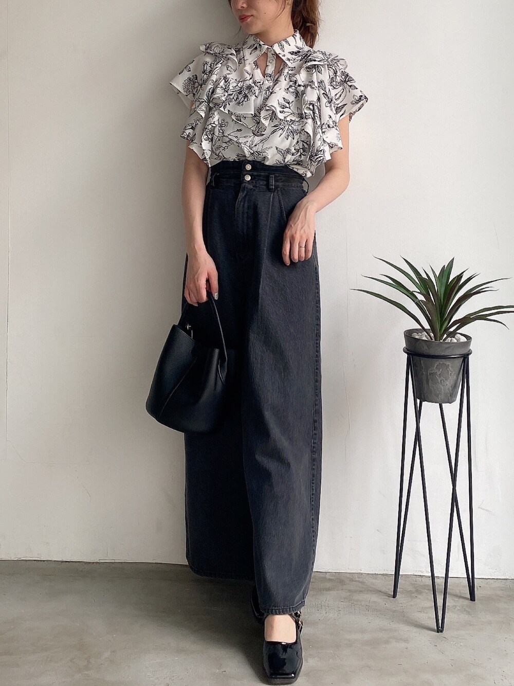 \ 大人気のダズリン神デニム / 骨格関係なくみなさんスタイルアップ できちゃいます!! フリルのブラウス合わせでカジュアル要素のあるデニムも大人可愛く着こなせます🌼