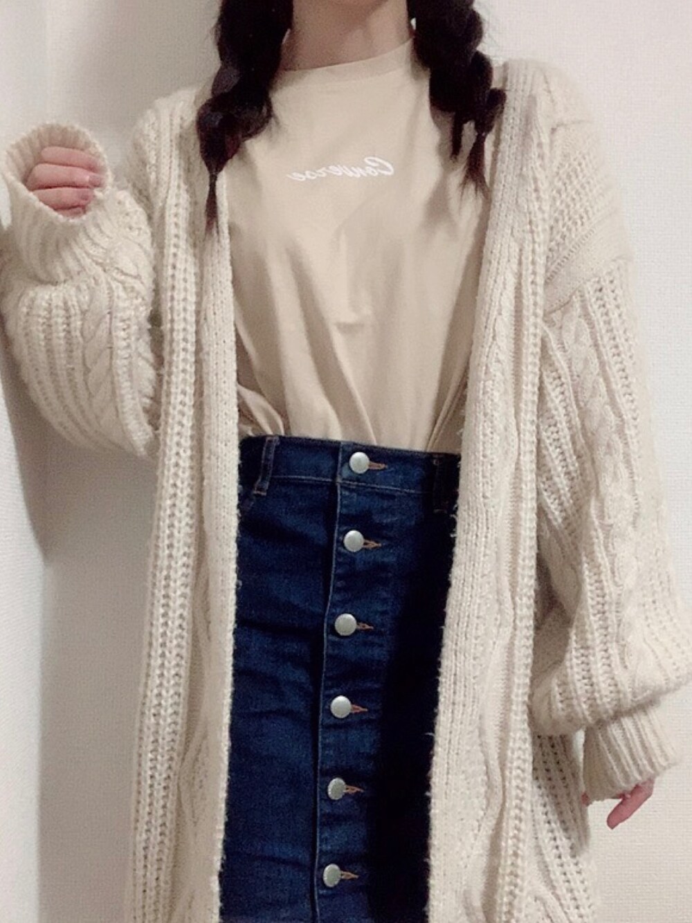 アドレセンスさんからティシャツを頂きました❤︎ ケーブルカーディガンと合わせてゆるコーデ₍ᐢ. ̫.ᐢ₎♡