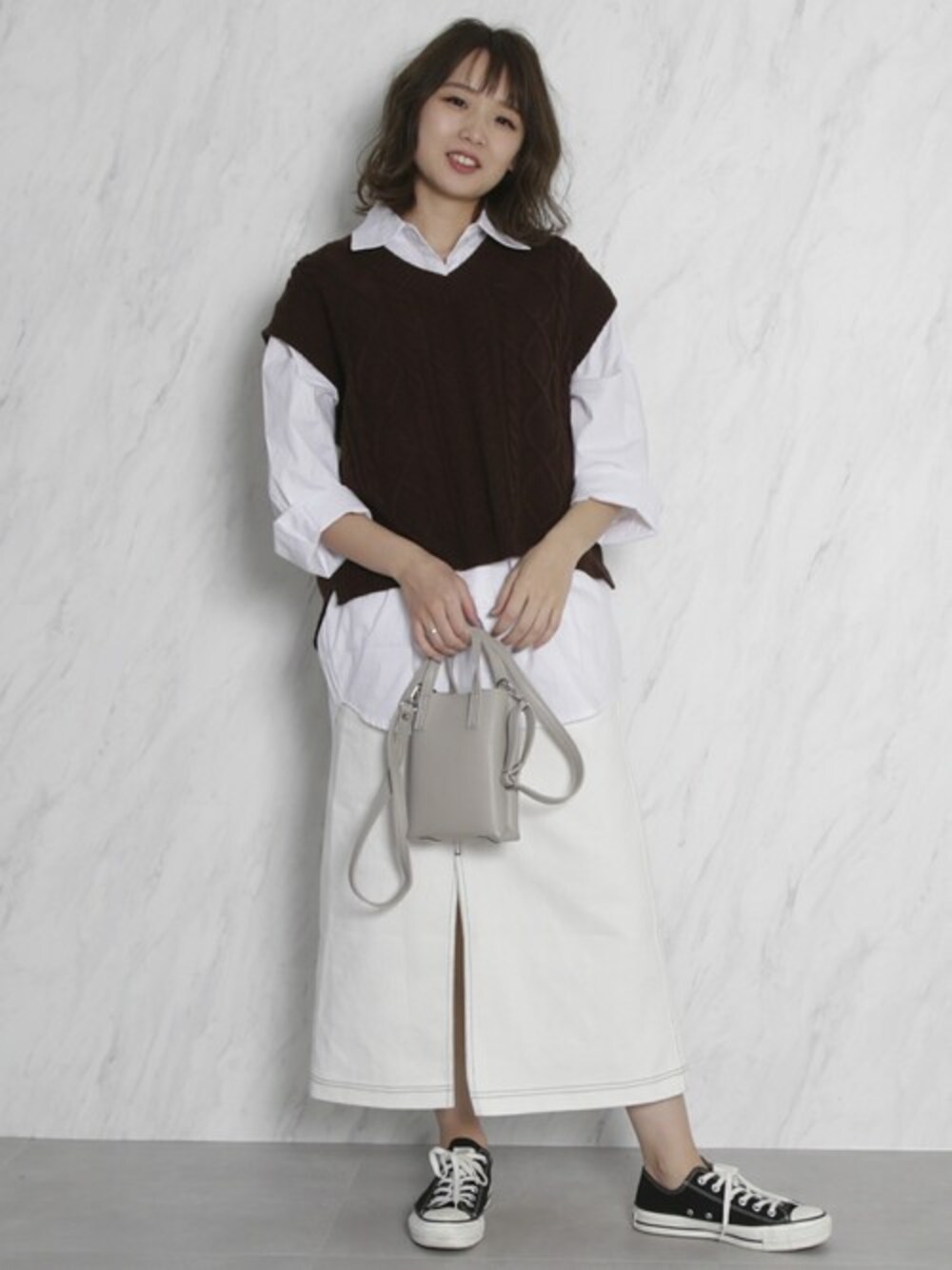 シャツ・ベストのセットとスカートをあわせたカジュアルコーデ!