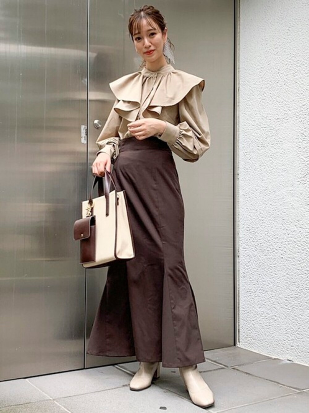 トレンド感のある襟がかわいいブラウスと 今年は持っておきたいマーメイドスカートのコーデ♡