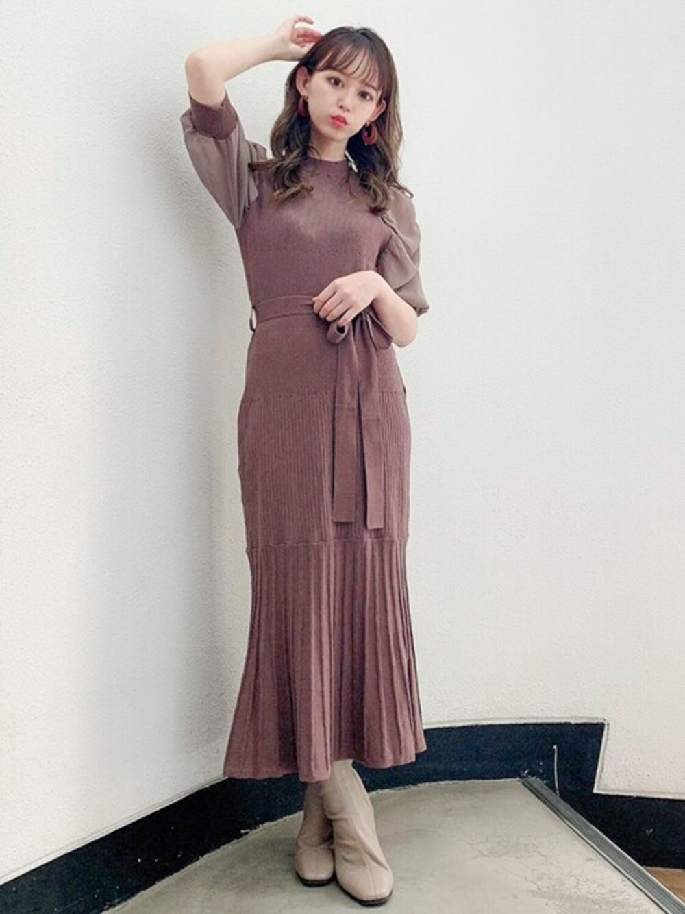 dazzlin SHOP STAFFのワンピース「シフォンスリーブマーメイドニットワンピース」を使ったコーディネート