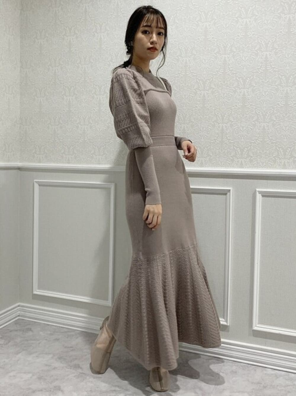 dazzlin SHOP STAFFのワンピース「クロシェオープンポイントニットワンピース」を使ったコーディネート