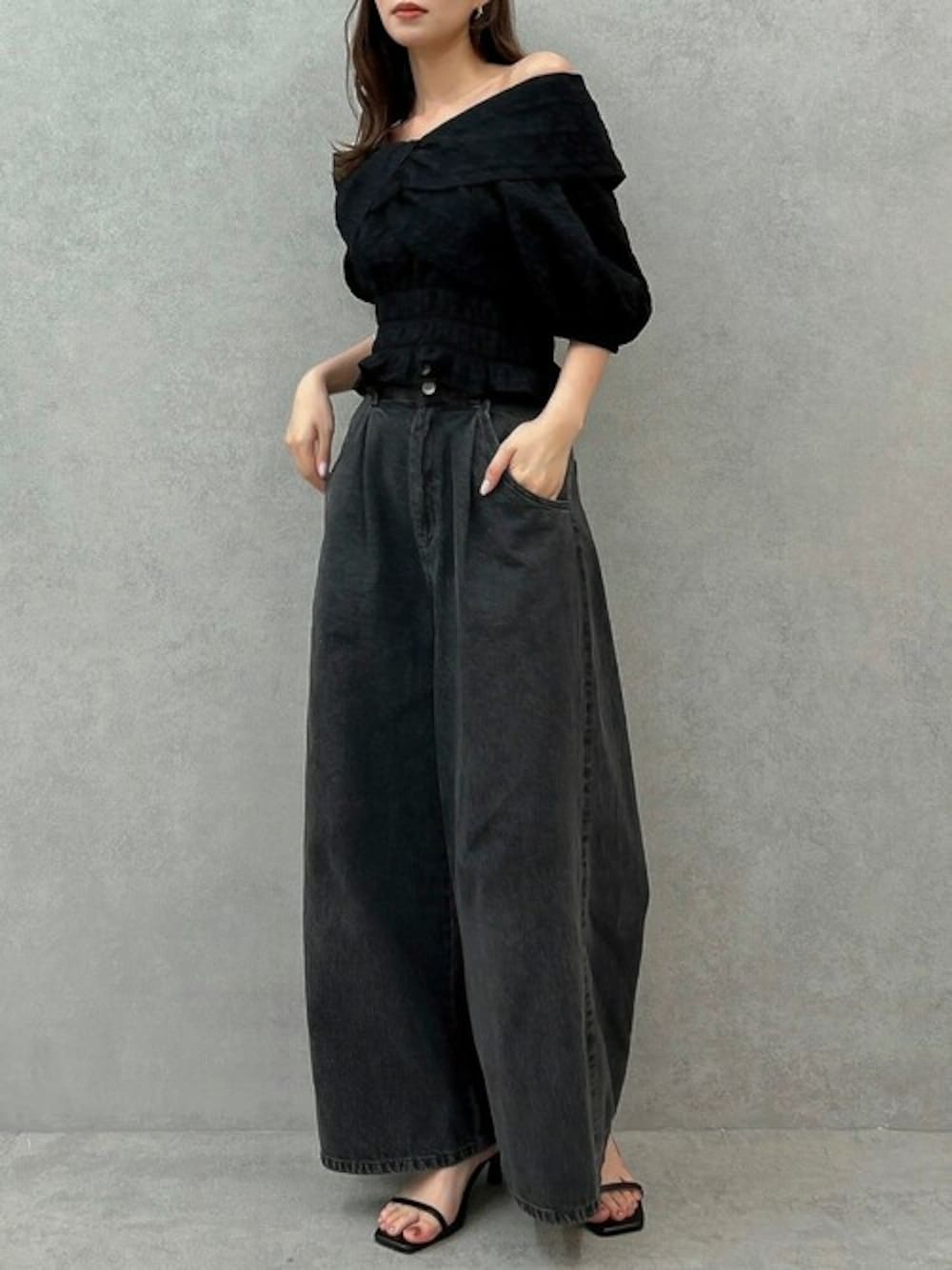 リボンデザイン×オフショルで華やかなコーデ♪ トレンドのワンショルデザインが大人かわいいブラウスです♡