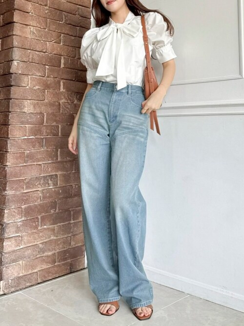 この夏にしたい!きれいめカジュアなデニムコーデ! 爽やかで清潔感のあるリボンブラウスにデニムが今の気分にぴったり✨