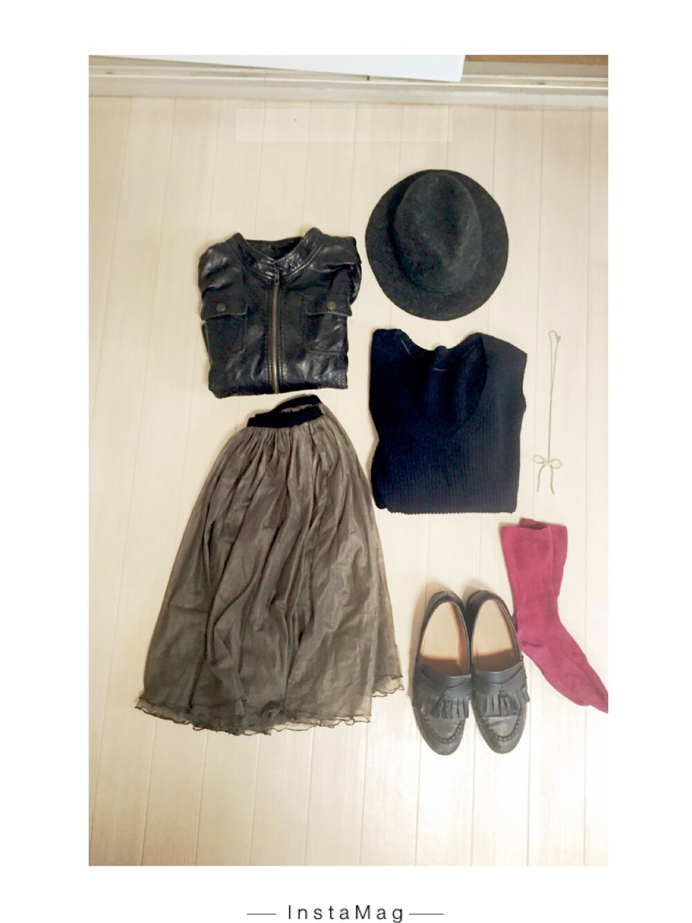 ぽかりのスカート「チュールミディスカート」を使ったコーディネート