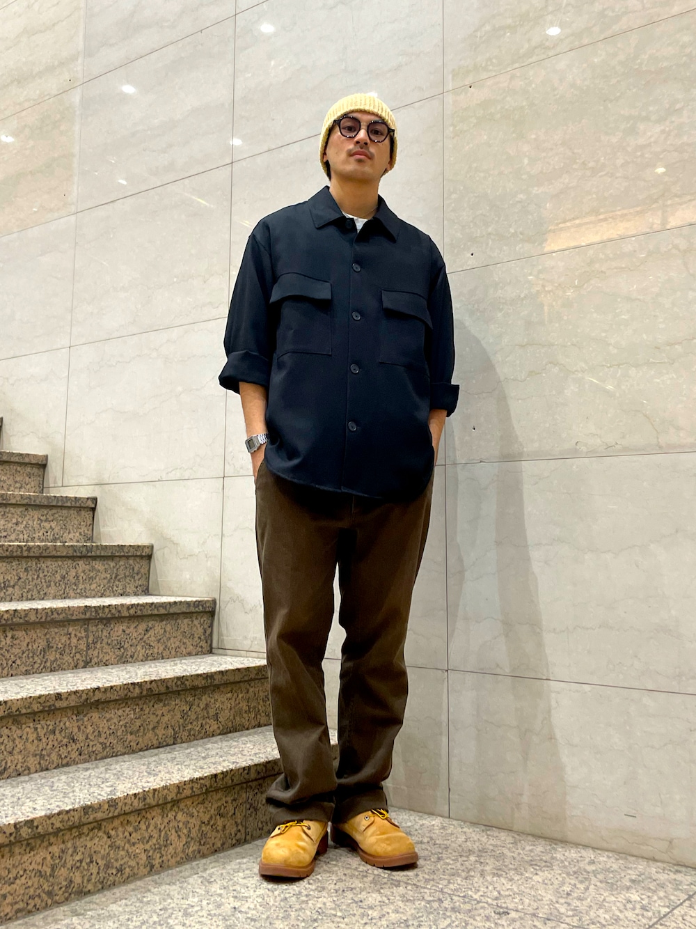 Daisuke(OVERRIDEルミネエスト新宿)のニットキャップ/ビーニー「OVERRIDE JPF URARA WATCH / オーバーライド」を使ったコーディネート
