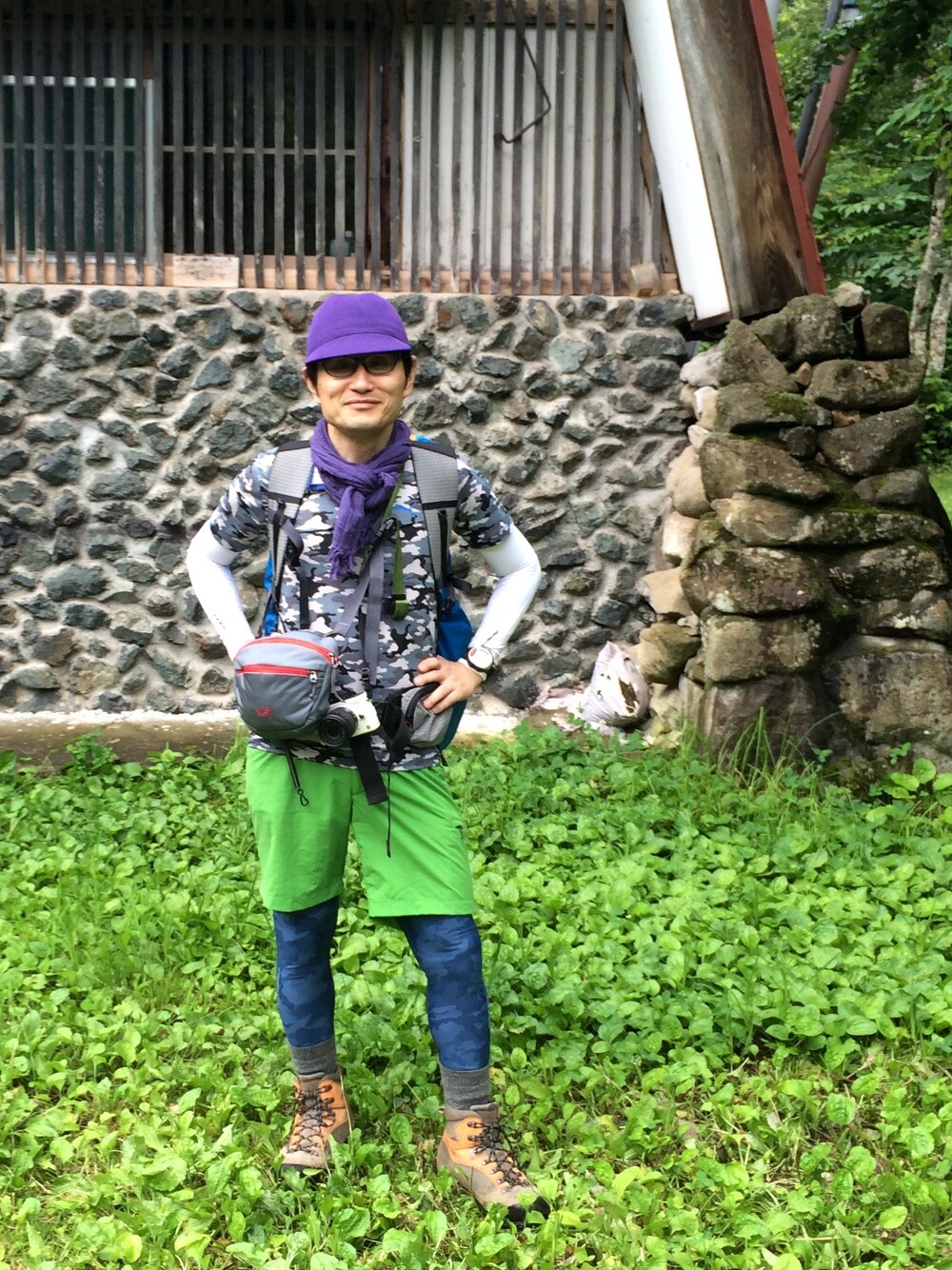 キャップ:KANGOL Tシャツ:PUMA パンツ:The Noeth Face タイツ:NIKE ブーツ:Zamberlan ポーチ:Arc'teryx Maca2 リュック:Gossamer Gear Gorilla ストール:今治タオル