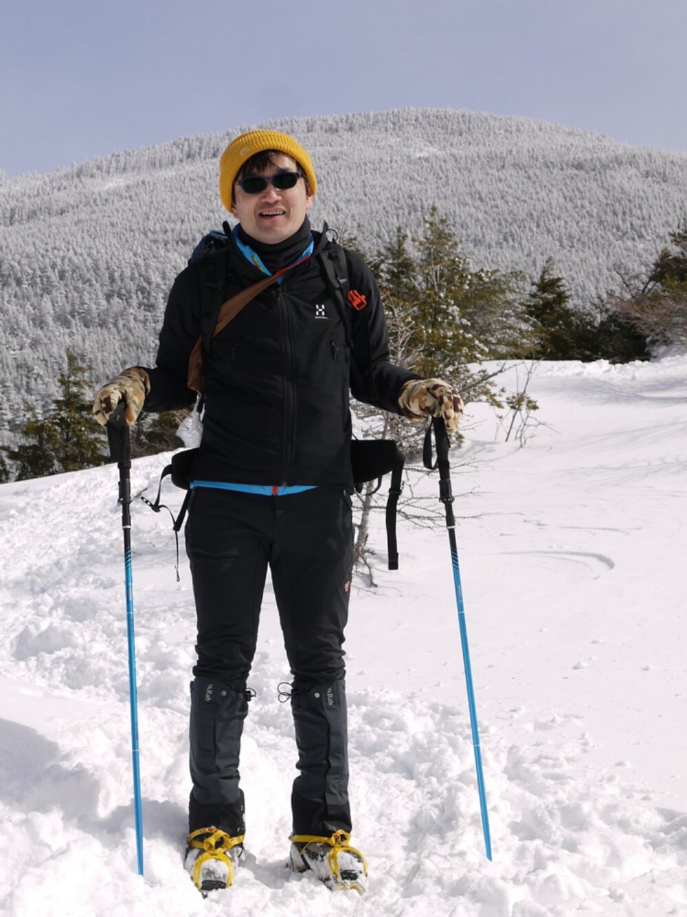 アウター:ホグロフス パンツ:BAILO ヌナブトパンツ 3M ブーツ:SIRIO P.F.730 クランボン:GRIVELエアーテック ニューマチック キャップ:ジャーナルスタンダード ミッドレイヤー:Patagonia ポール:HELINOX LTL-125 ゲイター:Rab Stretch Neo Gaiter