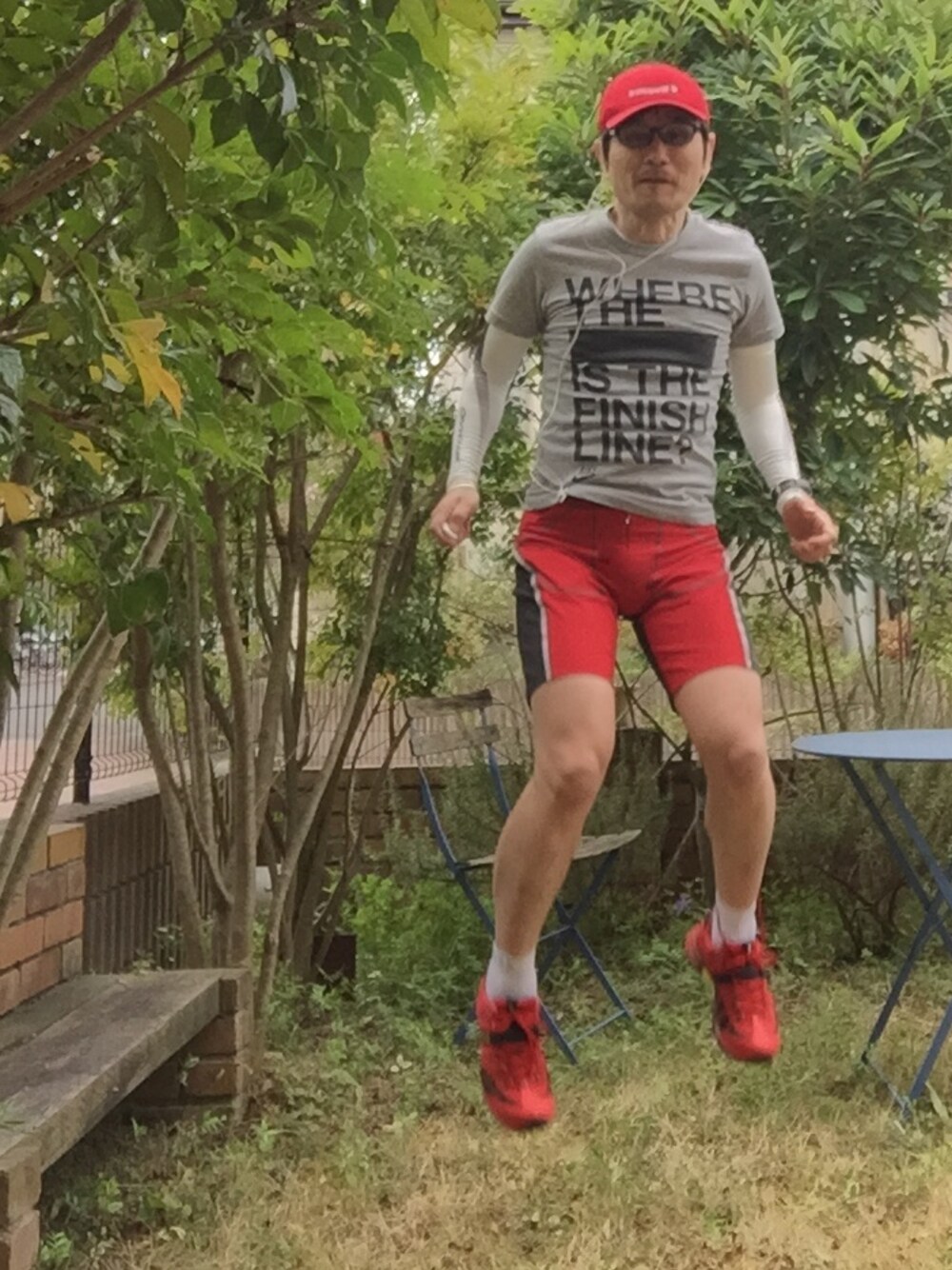 キャップ:ルコックスポルティフ Tシャツ:NIKE パンツ:BAILO グライダーパンツ5M シューズ:montrail アームカバー:ONYONE