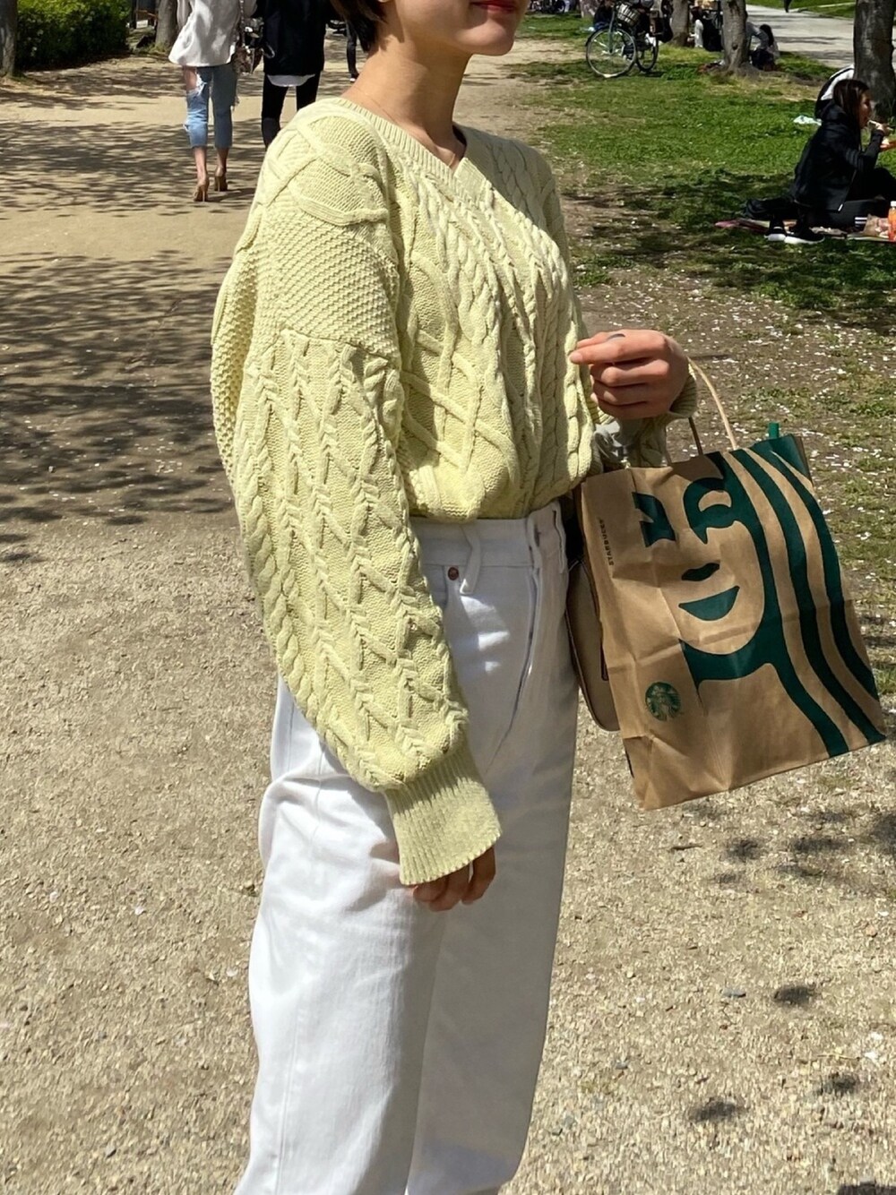 髪バッサリ切って桜を見に行った時の🌸🌸 春らしいイエローがお気に入り♡