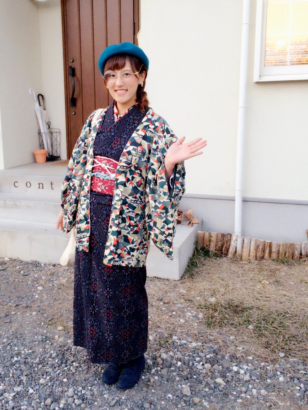 地味コーデ。 今日は先輩と着物屋さんに行きました。 かわいい帯と着物を一点購入、お正月に来たいと思います〜♩