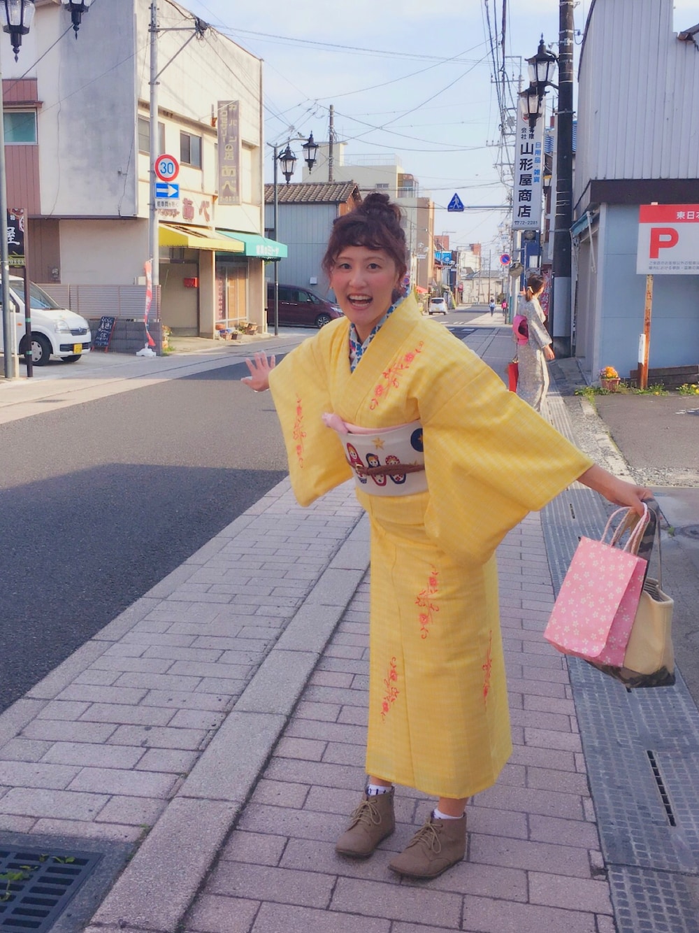 オン眉です。 チェックで刺繍が入っててイエローなんて春らしい😊💕