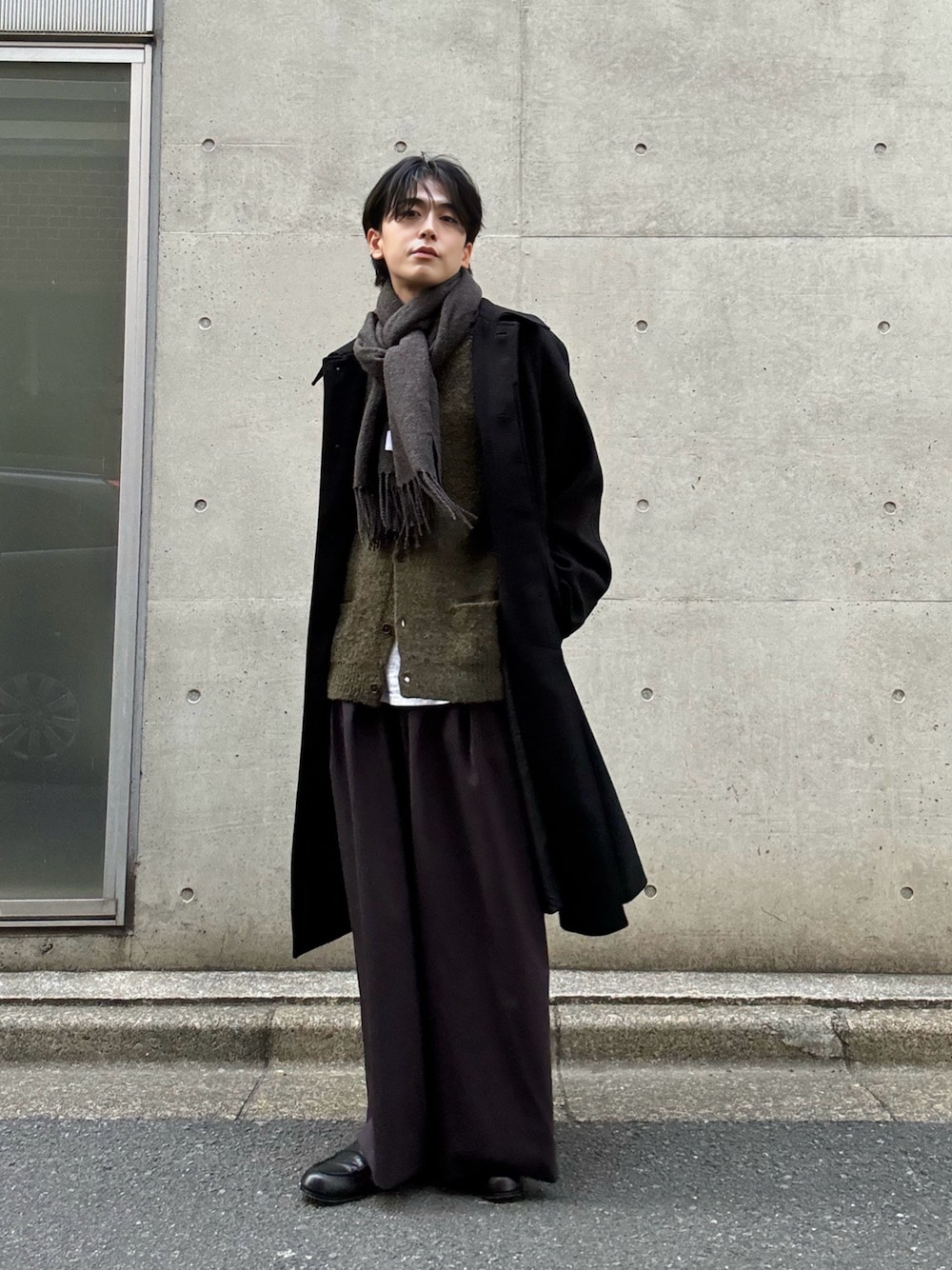 首元が寒かったので、マフラーを巻いて温かくしました! カーキとブラウンの相性は◎ [Instagram] → @daisuke_doi_ お洒落初心者でも簡単に真似しやすく、シンプルでおしゃれになれる組み合わせを発信中! よかったら上記のアカウントをチェックしてみて下さい😊