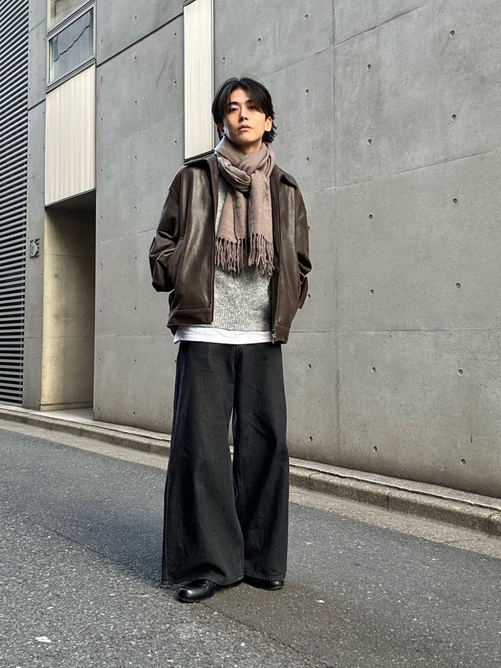 冬らしくマフラーに、白Tシャツを取り入れて抜け感を出し、色合いのバランスを取ってます! ———————————————————— 【Instagram】 →『@daisuke_doi_』