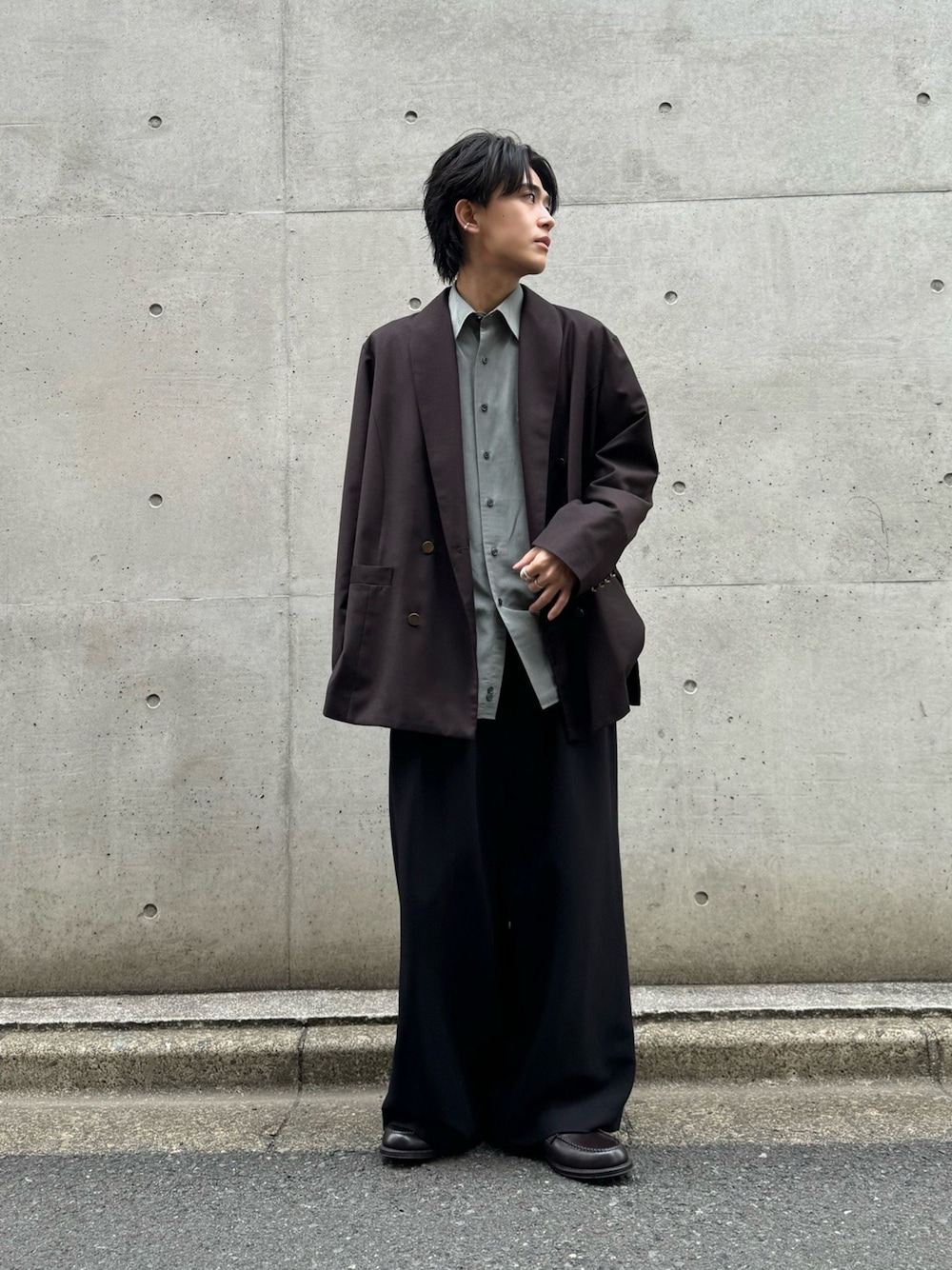 ダイスケのスラックス「SLIGHT FLARE DOUBLE CLOTH BAGGY SLACKS」を使ったコーディネート