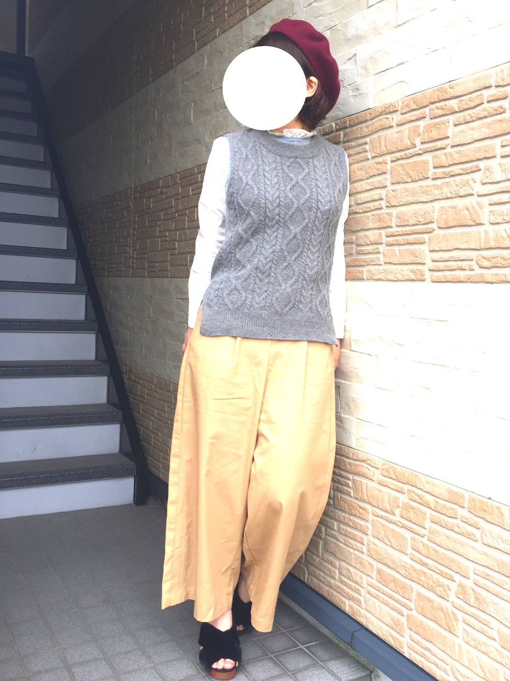 しょゆのベスト「【お買い得アイテム】ケーブルニットベスト」を使ったコーディネート