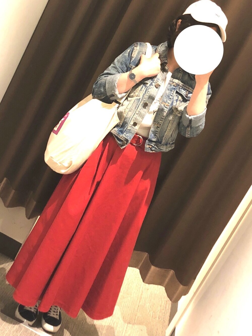 キャップに初挑戦……!✨ 似合っているかわからないけど(笑) 赤いスカートは店頭で一目惚れして即決購入しました😊😊 鶏白湯つけ麺がとても美味しかったです🍜💞